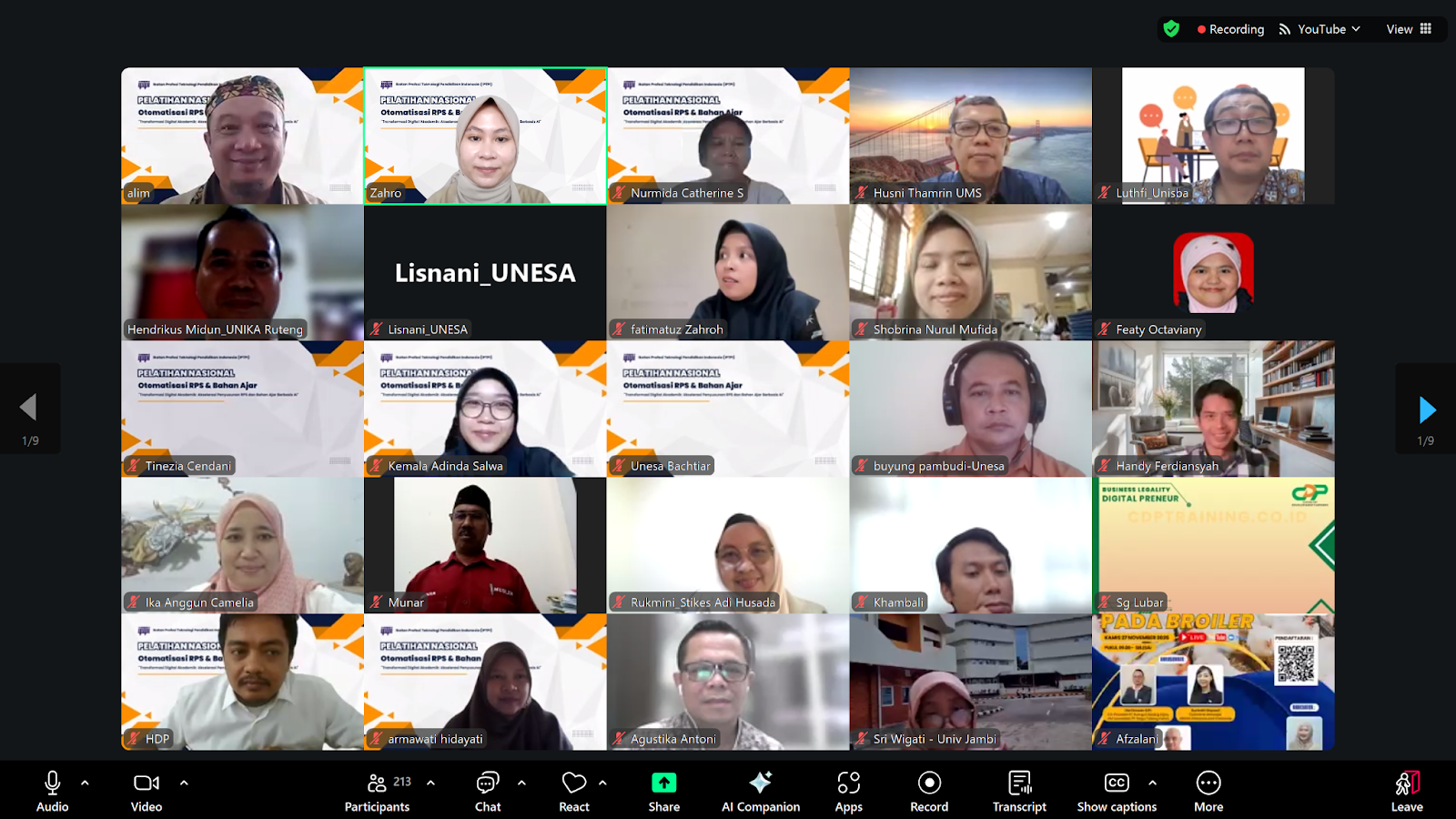 Ikatan Profesi Teknologi Pendidikan Indonesia (IPTPI) sukses menggelar Pelatihan Nasional bertajuk "Otomatisasi RPS & Bahan Ajar Berstandar Nasional Berbasis AI", Rabu (07/01/2026). Kegiatan yang berlangsung secara daring ini dihadiri oleh sekitar 200 dosen dan praktisi pendidikan dari berbagai perguruan tinggi di Indonesia yang antusias mencari solusi atas tantangan administrasi akademik.