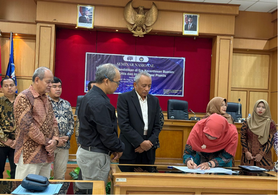 Acara pelantikan ditutup dengan menyanyikan lagu "Padamu Negeri" dan sesi foto bersama, sebelum para peserta melanjutkan agenda ke sesi Seminar Nasional yang membahas lebih dalam mengenai implementasi praktis AI dalam dunia pendidikan.